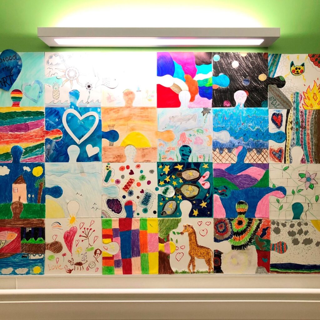 The Olee Team worked with Beacon Children’s Hospital Art Therapist Sarah Tyler to develop magnetic wall panels as an art wall that allows patients on PEDS and PICU (pediatric intensive care unit) an opportunity to create artwork which is collaborative with other patients on the floor. The Olee Team provided their Magnetic Graphics System which allows the artwork to adhere to the magnetized wall, using magnetic receptive paper that the patients apply their art to. The art therapy display is cheerful and provides a space for creative, unique, and meaningful artwork created by the patients to be viewed daily by staff and families.
