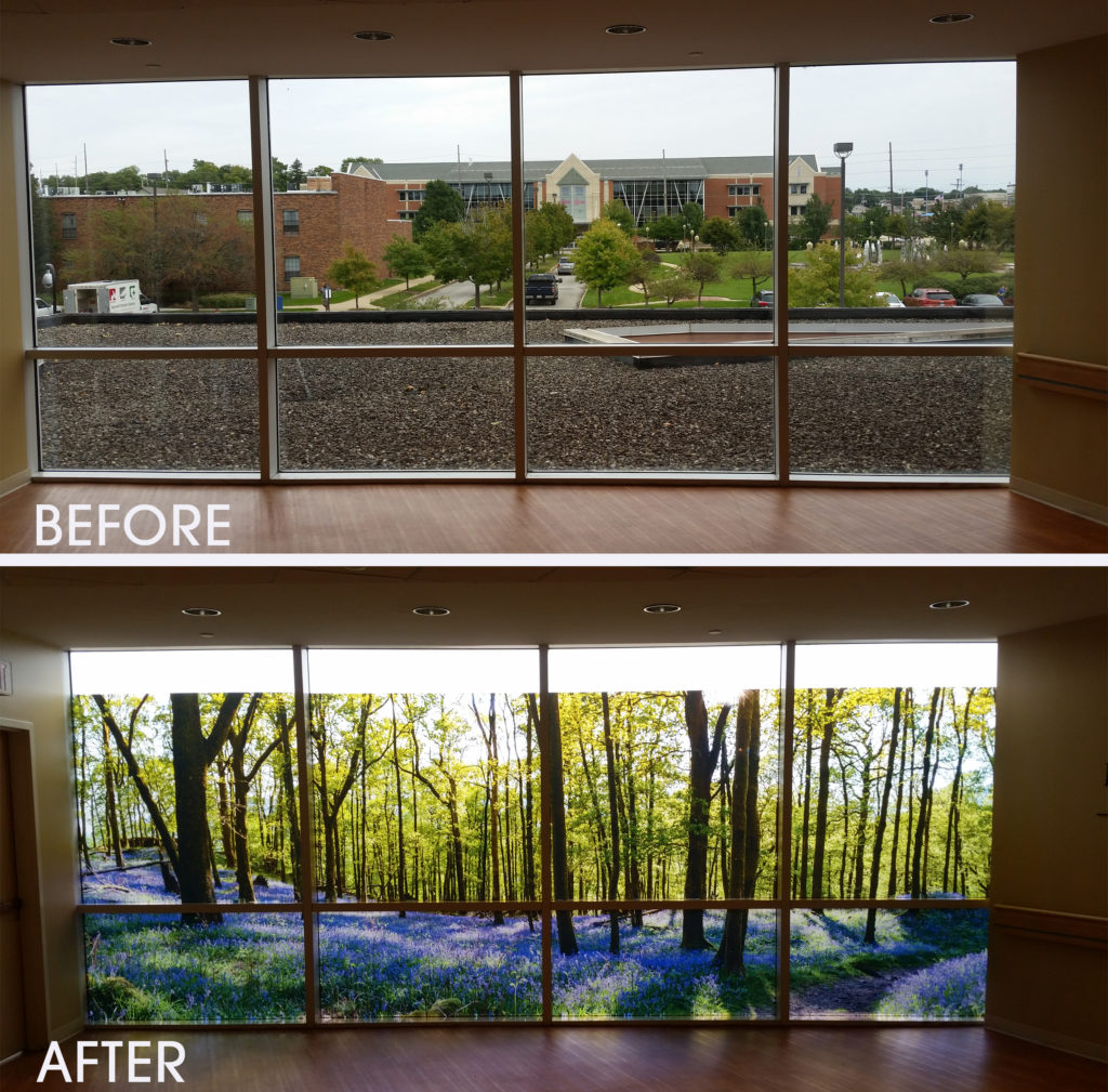 Our client wanted to hide the rooftop just outside the window and instead, provide patients with a more uplifting view that supports well-being while still allowing natural light into the space.