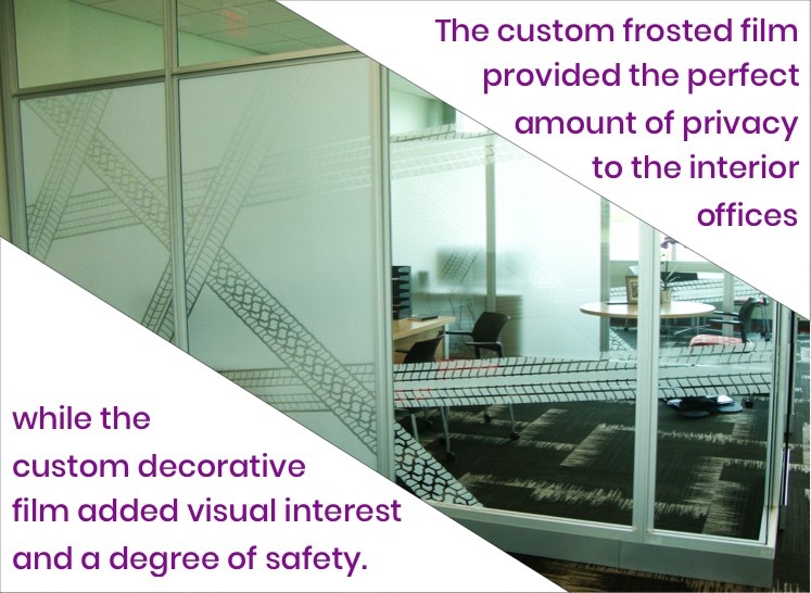 Custom privacy and decorative film patterns were created for each individual size glass pane.