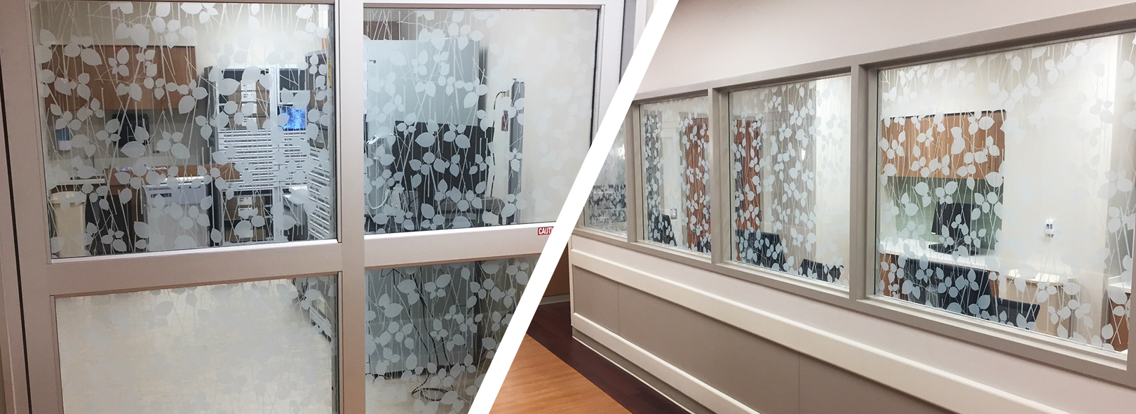 As a result, the Olee Creative team were called upon to help provide solutions in two areas: glazed surfaces on sliding doors to patient rooms and glazed surfaces on administrative areas.