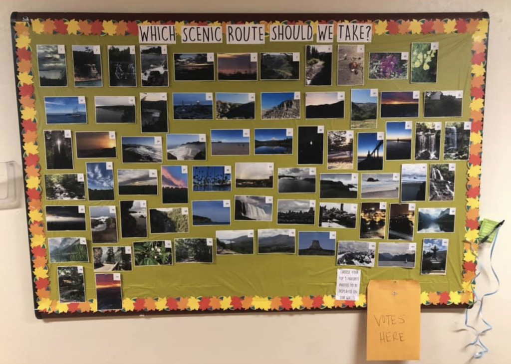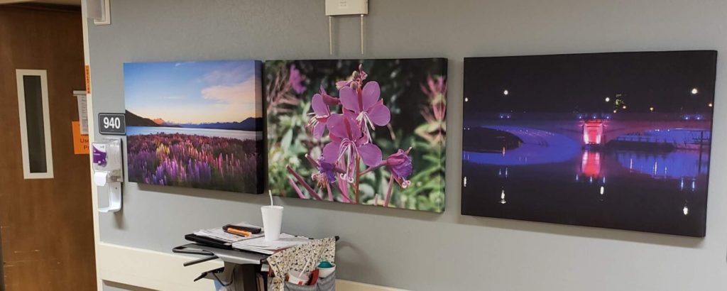 Kate Wilhelm worked with the Memorial 9 South staff to submit favorite scenic images with the idea that several of them would be made into art for the corridors on the unit. Over 80 photos were submitted via a bulletin board on the unit and the staff “voted” for their favorites (see photo below). Kate sent Olee Creative the image “favorites” and we checked them for resolution and clarity.