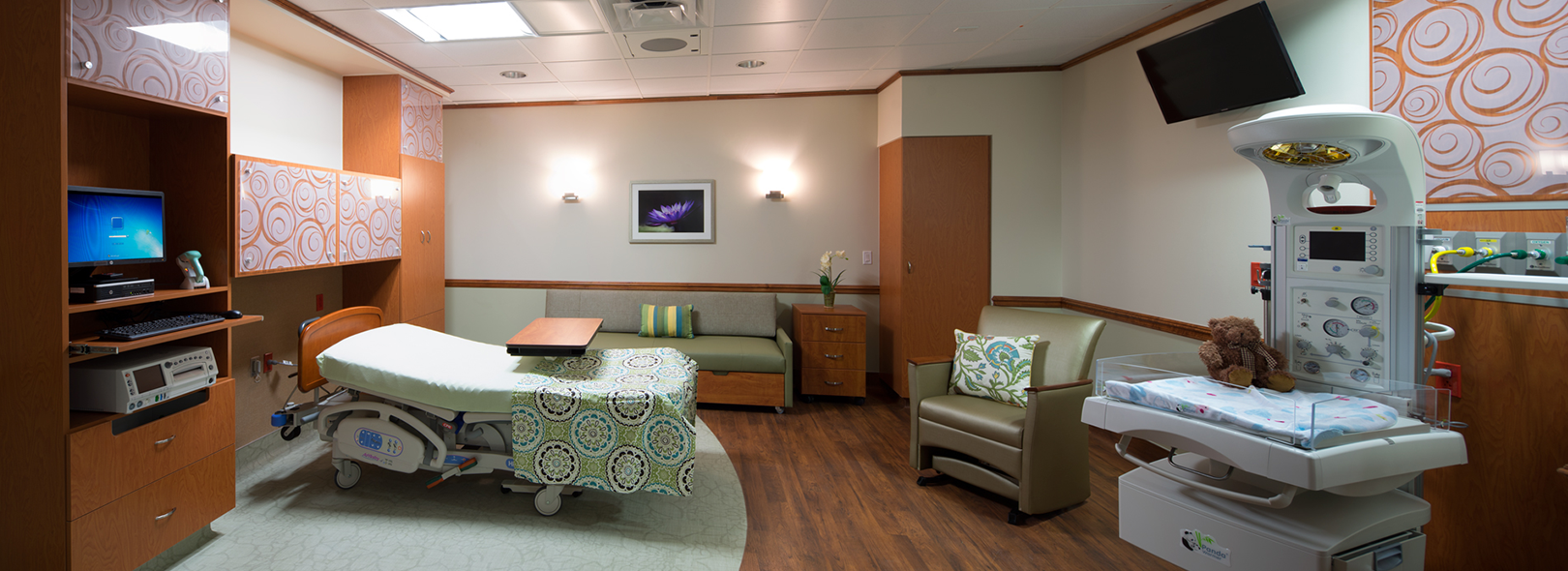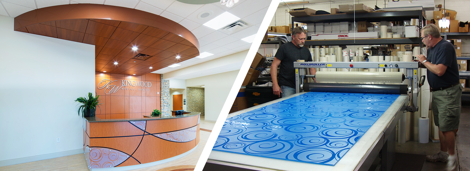 Solution: The Olee team collaborated with interior designer, Tiana Lemons, of Gould Turner Group, to incorporate her vision into the space. The designer selected OleeVue pattern Twirl 404, and provided conceptual drawings indicating sizes and quantities needed. The Olee team printed full panels with the selected pattern which were then sent to the millwork supplier to contour cut and incorporate the custom shapes into the millwork & cabinetry. The end product is aesthetically pleasing, affordable and transformative! OleeVue panels can be used in place of glass, as partitions, door fronts, or to add an element of design or privacy. With the hundreds of combinations of patterns and translucency, as well as custom designs and colors, the possibilities are endless. Panels can be used as artwork or can work as supplemental design elements which create an aesthetic center of attraction.