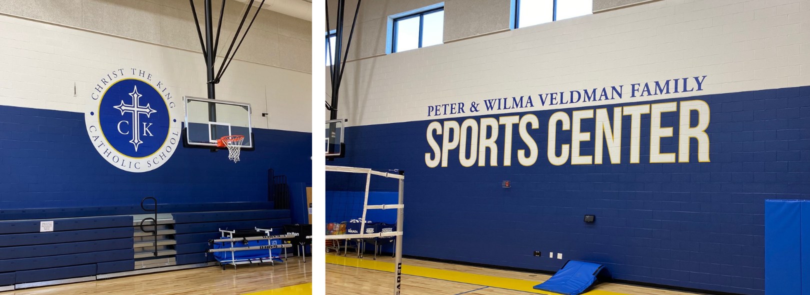 Goal: Create custom self-adhesive wall films to display logos and messaging in the gymnasium at Christ the King Catholic School.