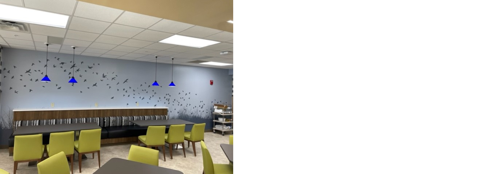 Solution: We design and installed custom nature-inspired vinyl images to add to the current wall to add both the prairie grass and flock of birds.
